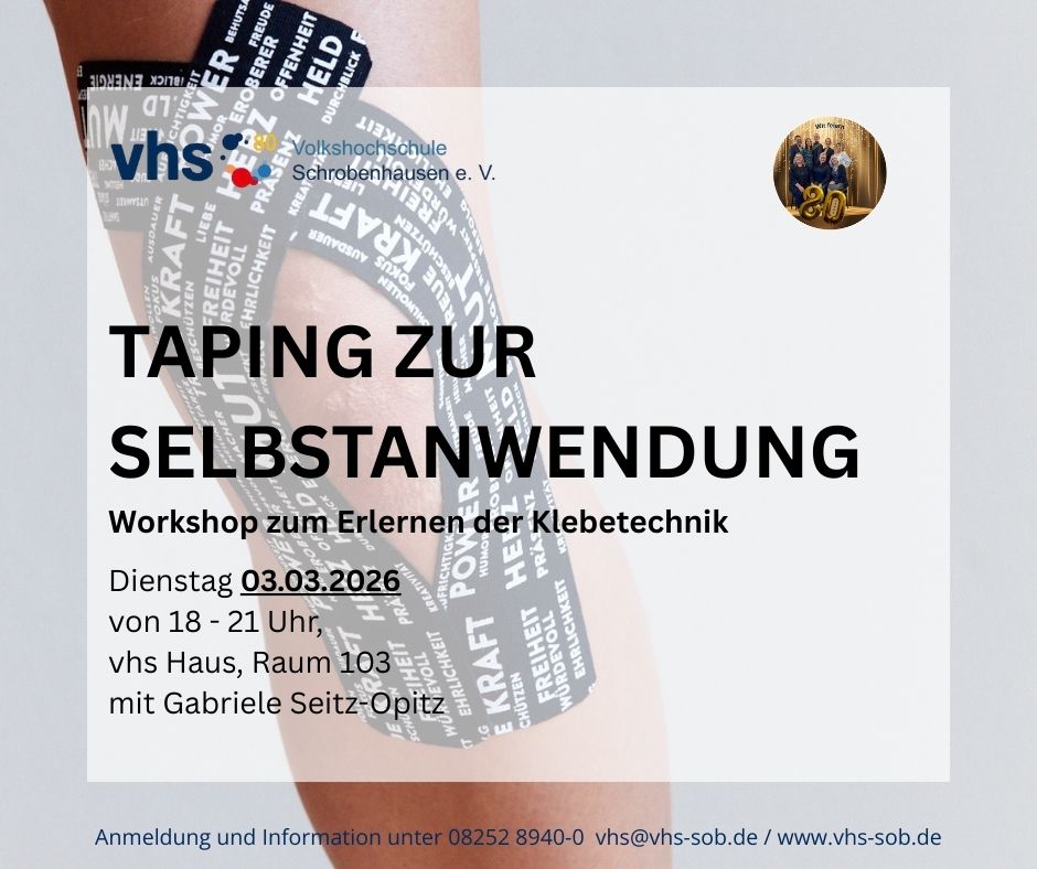 | Kurstitel: NEU - DO IT YOURSELF - Taping zur Selbstanwendung | Kursbeginn: Di., 03.03.2026 | |