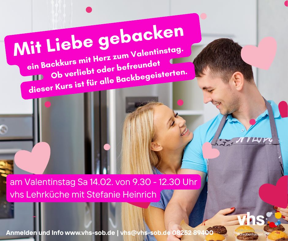 | Kurstitel: Mit Liebe gebacken – ein Backkurs mit Herz zum Valentinstag | Kursbeginn: Sa., 14.02.2026 | |