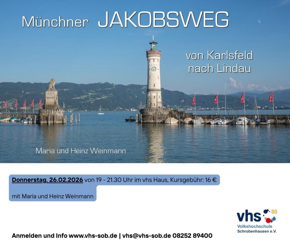 | Kurstitel: Münchner JAKOBSWEG von Karlsfeld nach Lindau | Kursbeginn: Do., 26.02.2026 | |