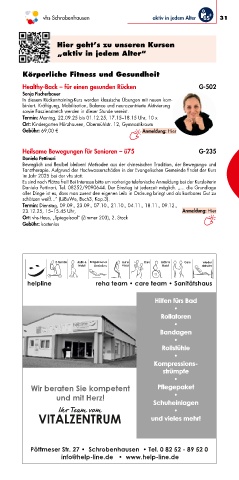 helpline VITALZENTRUM u und vieles mehr! ! u und vieles mehr! ! n h r ! helpline Gesundheit und Mobilität!