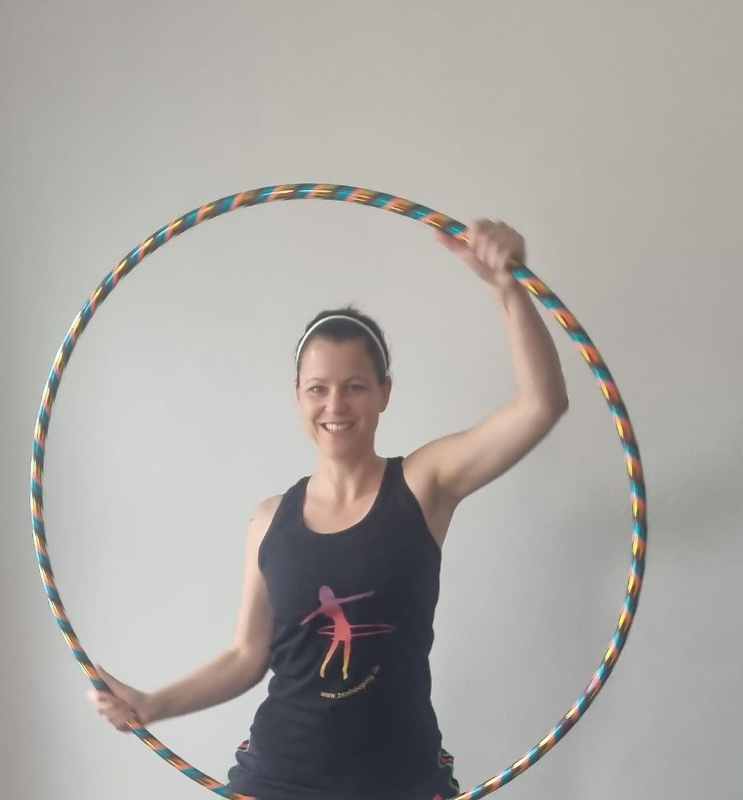 Beim Hoopfitness wird der Hula Hoop Reifen zum Fitnessgerät. Durch gezieltes Training der Muskeln ist Hoopfitness ein effektives Ganzkörpertraining mit dem das Herz-Kreislaufsystem in Schwung gebracht, die Ausdauer verbessert und die Fettverbrennung angekurbelt wird.