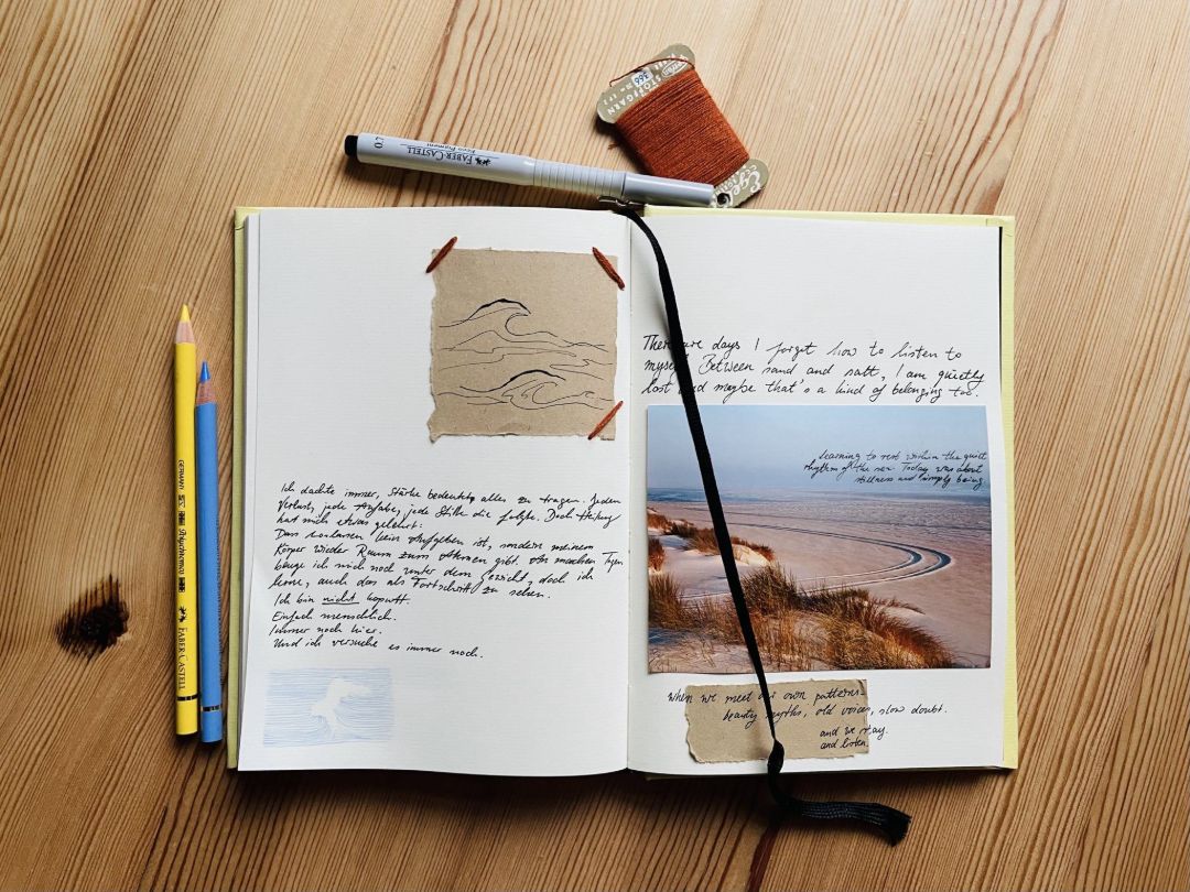In diesem Kurs gestaltest Du ein ganz persönliches Buch, einen stillen Begleiter durch Gedanken, Gefühle, Träume und Lebensübergänge. Kapitel entstehen aus eigenen Gedanken, Erinnerungen, Träumen und Gefühlen. Mit kleinen Schreibimpulsen, Skizzen, Collagen, achtsamer Materialarbeit und viel Raum zum Innehalten entwickelst Du Seite für Seite ein Journal, das Dich durch schwere Zeiten trägt, oder einfach Freude macht. Ob am Tisch oder auf einem Kissen am Boden: Du gestaltest ganz in Deinem Rhythmus. Alles darf entstehen, nichts muss fertig werden. Es geht nicht um Technik, sondern um Verbindung, zu sich selbst und zum Moment.