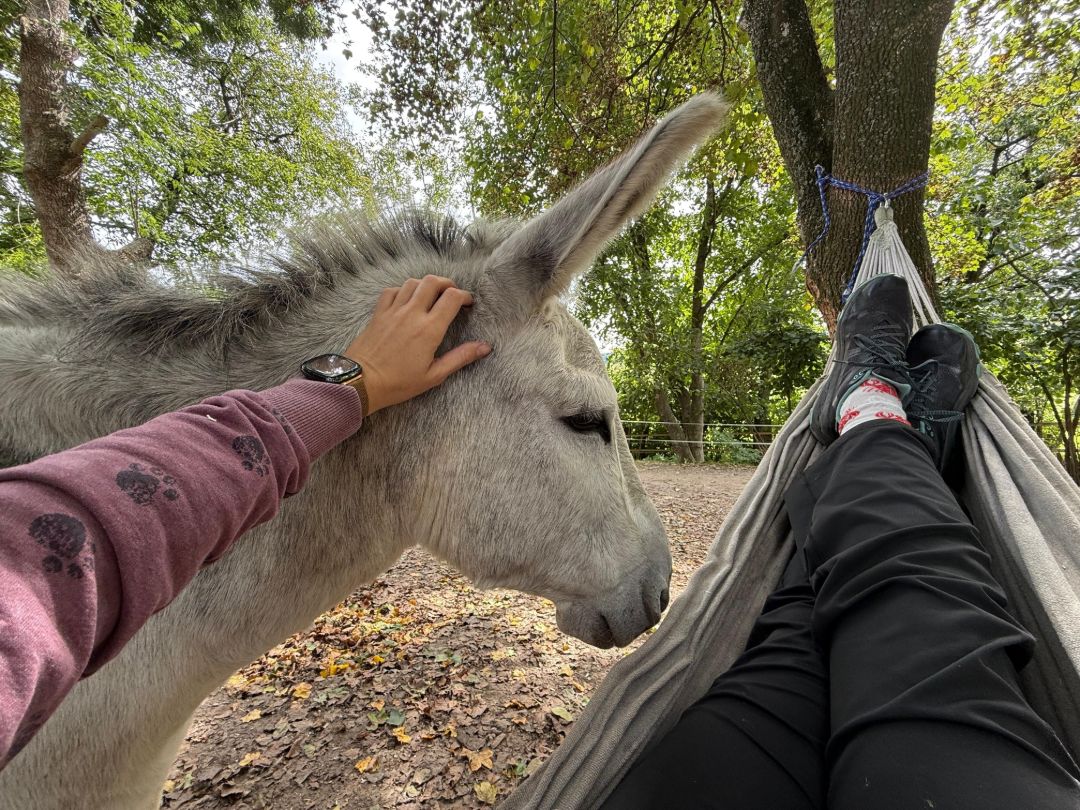 Wir und die Esel bieten Dir den Raum, um bewusst zu entschleunigen und die Verbindung zu Dir und Deiner Umwelt zu erleben. Zwei Yoga-Einheiten (jeweils 1,5 Std.) - aktivierendes Yoga am Vormittag, beruhigendes Yin Yoga am Abend (für Anfänger und Fortgeschrittene geeignet!). Dazwischen viel Zeit mit den Eseln: Sie laden uns ein, im Hier und Jetzt anzukommen und mit ihnen in Beziehung zu gehen.