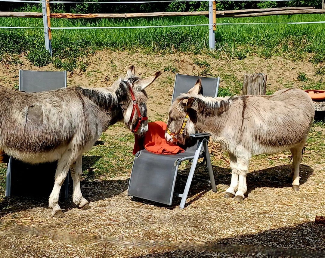 Sie erinnern uns daran, zu Fühlen statt zu Denken. Trotz ihrer Offenheit und Bindungsfähigkeit schauen Esel in erster Linie selbstfürsorglich auf sich selbst - sie achten ihre Bedürfnisse und Grenzen. Das hilft ihnen dabei, ihre Kraft und ihre Lebensfreude zu bewahren und dabei trotzdem Teil der Gemeinschaft zu sein. Scheint, als hätten Esel verstanden, was es für ein zufriedenes Leben braucht..