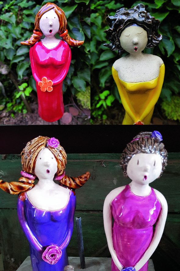 Mit diesem Workshop starten wir kreativ in die neue Gartensaison. Wir modellieren in diesem Workshop zusammen, „Schritt für Schritt“, eine Gartendame wie abgebildet (Höhe ca. 20 cm). Du kannst die Frisur frei gestalten, entscheiden ob Deine Dame ein langärmeliges oder schulterfreies Kleid trägt, ob sie lächelt, singt oder pfeift und welches Blümlein Du ihr in die Hand geben möchtest. Freu Dich auf einen entspannten, kreativen Abend.  Der Glasiertermin wird dann in der Gruppe gemeinsam ausgemacht. In der Kursgebühr sind bereits Material-, Brenn- und Glasurkosten enthalten, optional kann 1 Stahlstab für 4 € zum Aufstecken der Dame erworben werden. Getränke und Süßes inbegriffen.