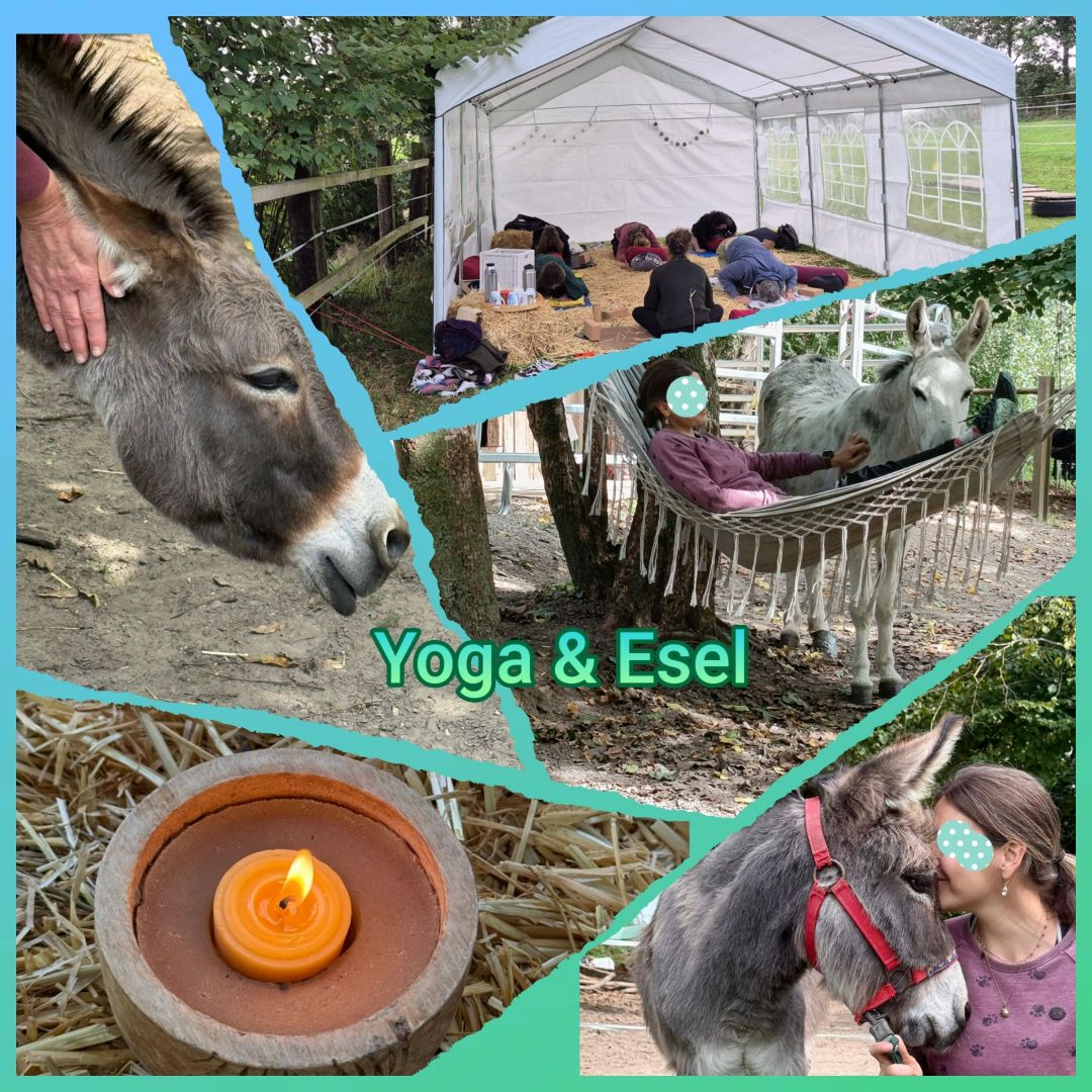 Wir und die Esel bieten Dir den Raum, um bewusst zu entschleunigen und die Verbindung zu Dir und Deiner Umwelt zu erleben. Zwei Yoga-Einheiten (jeweils 1,5 Std.) - aktivierendes Yoga am Vormittag, beruhigendes Yin Yoga am Abend (für Anfänger und Fortgeschrittene geeignet!). Dazwischen viel Zeit mit den Eseln: Sie laden uns ein, im Hier und Jetzt anzukommen und mit ihnen in Beziehung zu gehen.
