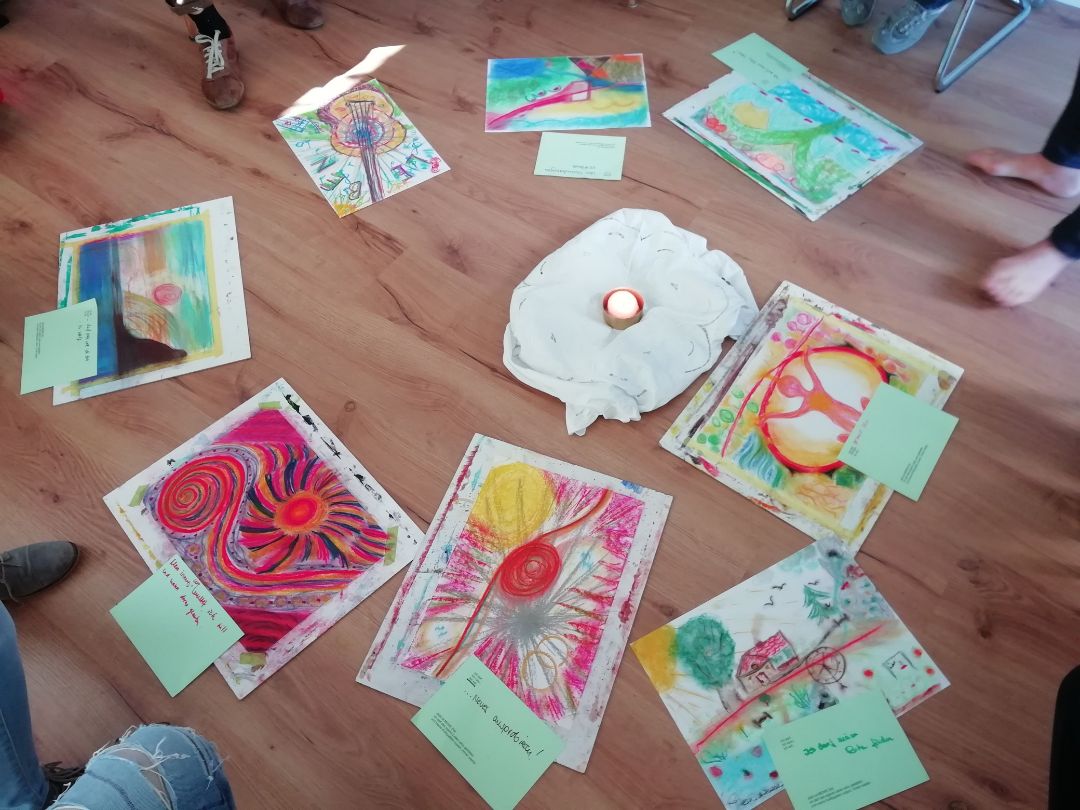 Freies Malen und Entspannung für Körper und Geist. Wir entdecken einen Impuls, der die Seele anspricht in der Runde durch Karten oder Gegenständen. Intuitiv und ohne Ziel, begleitet von Entspannungsmusik geht ihr mit Farben und Pinsel auf die Reise in euer Bild. Ihr lasst euch beim Malen treiben, bekommt individuelle Impulse und taucht ein in die Tiefe eurer Essenz. Pure Wellness für Körper, Geist und Seele! Es entstehen besondere Bilder, lasst euch von euch selbst überraschen und erweckt dabei auch eure Kreativität.